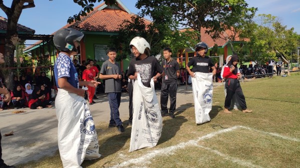 Pada lomba balap karung, antusiasme siswa sangat terlihat. Suara sorak-sorai pendukung dari teman-teman sekelas semakin memacu semangat para peserta untuk mencapai garis finish terlebih dahulu.